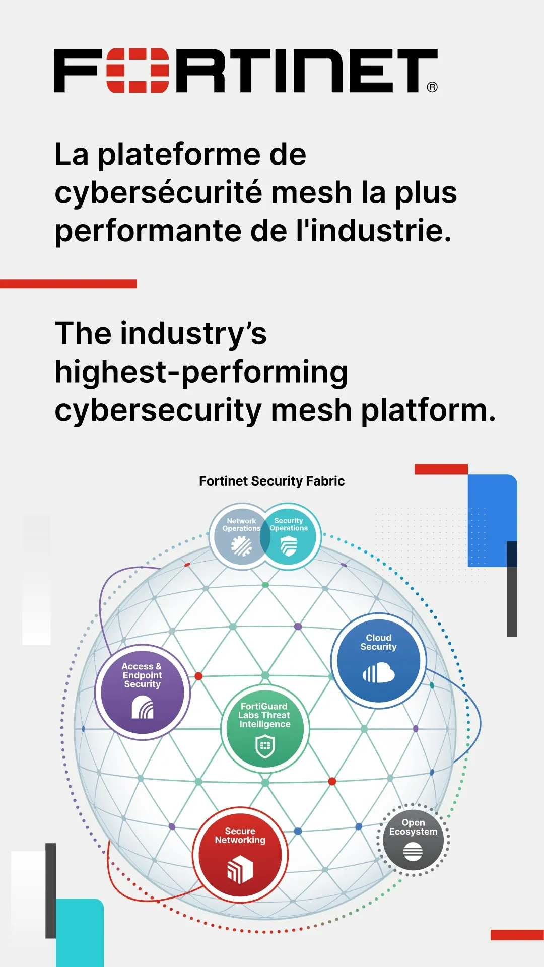 Depuis plus de 20 ans, Fortinet est une force motrice dans l'évolution de la cybersécurité et la convergence des réseaux et de la sécurité. Nos solutions de sécurité réseau sont les plus déployées, les plus brevetées et parmi les plus validées du secteur.
